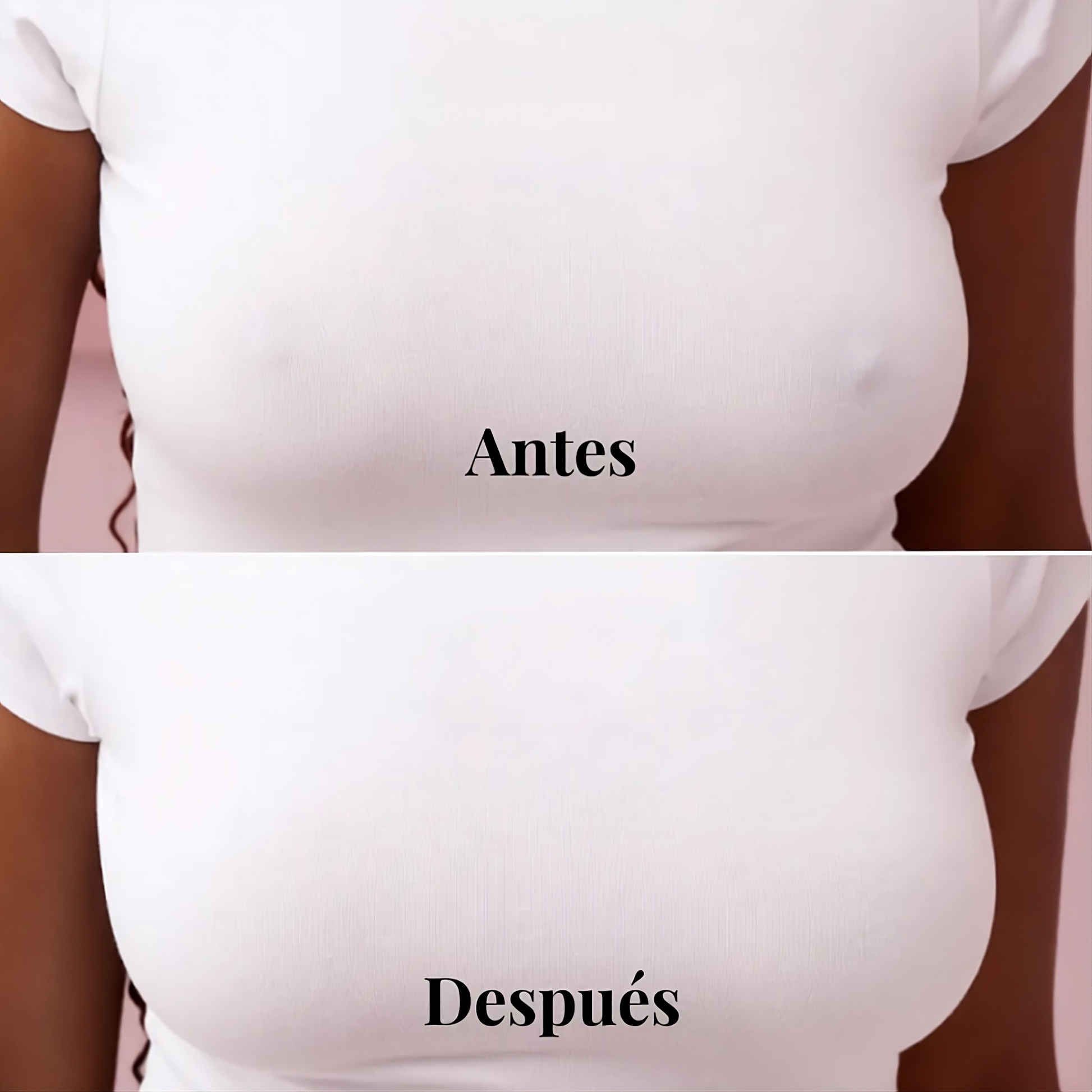 Nuestras pezoneras circulares reutilizables se adhieren suavemente sin adhesivos, son invisibles bajo cualquier prenda, resistentes al agua y cómodas todo el día